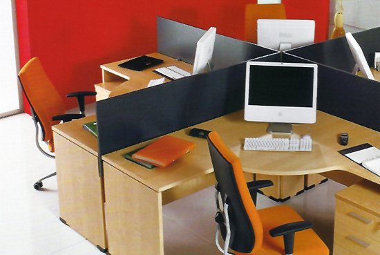 Pregrade između stolova izrađuju se od iverala debljine 18 mm obrađenog ABS rubnom trakom. Za radnu ploču stola pregrade se pričvršćuju pomoću kvalitetnih aluminijskih nosača.
