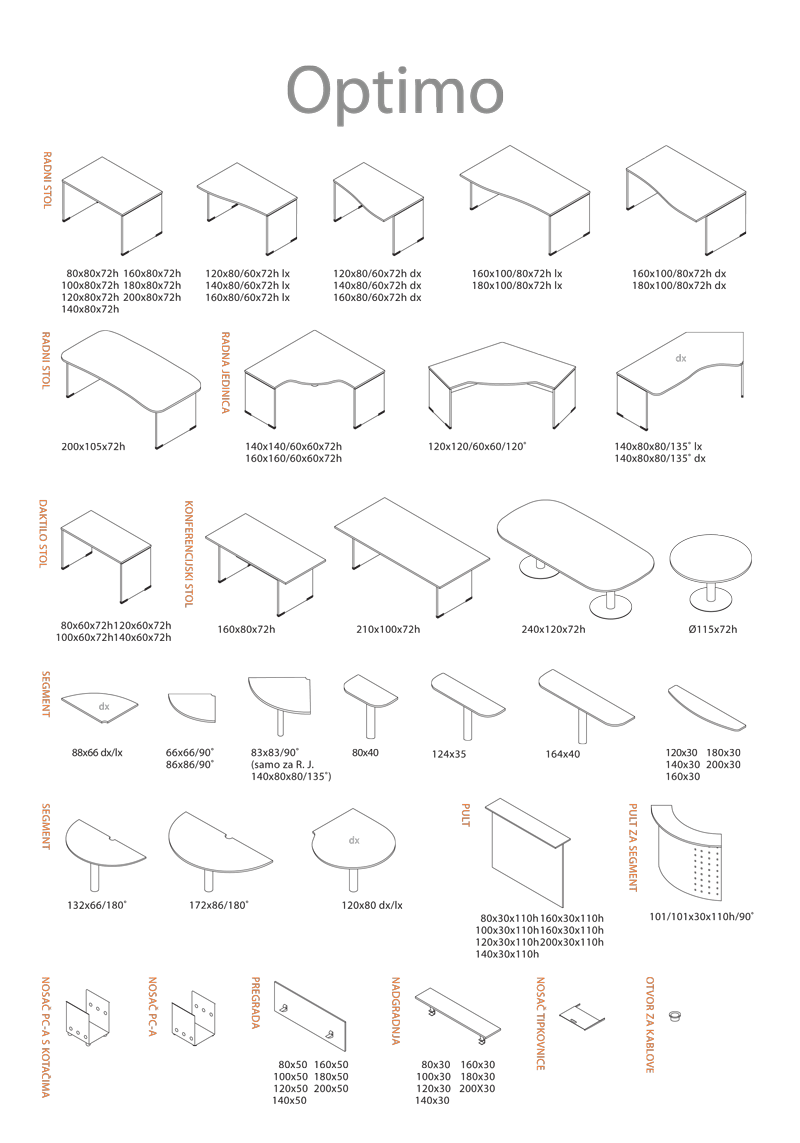 Optimo, jednostavan i kvalitetan program uredskog namještaja, isporučuje se u kratkim rokovima. Idealan je za opremanje manjih i većih uredskih prostora, jer ga krase funkcionalnost i izgled. Isporučuje se u osam standarnih boja/dekora (klikni na sliku lijevo).